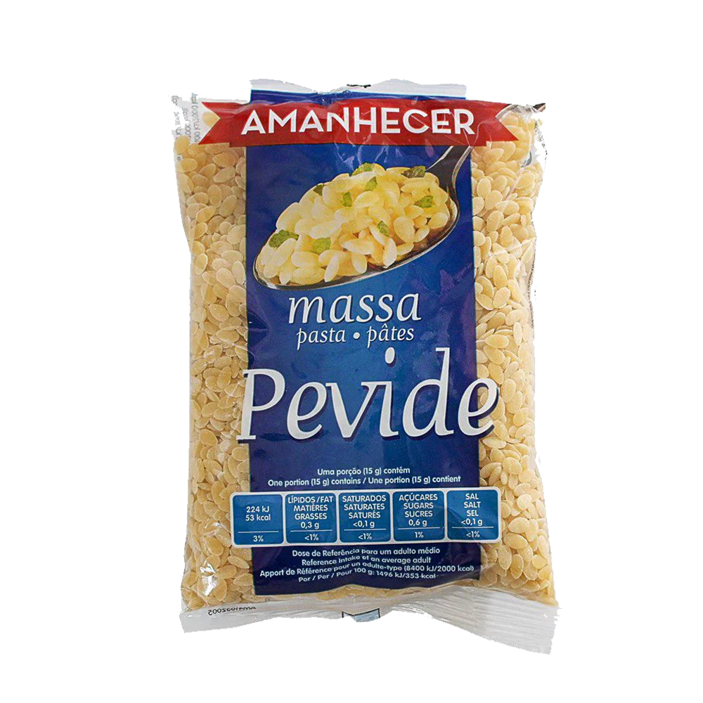 Massa de formato pequeno e ovalado, muito utilizada em sopas tradicionais. A massa Pevide é leve, de cozedura rápida e perfeita para dar mais corpo e textura a caldos e consommés. Feita com ingredientes simples e de qualidade, é uma escolha prática e reconfortante para o dia a dia.